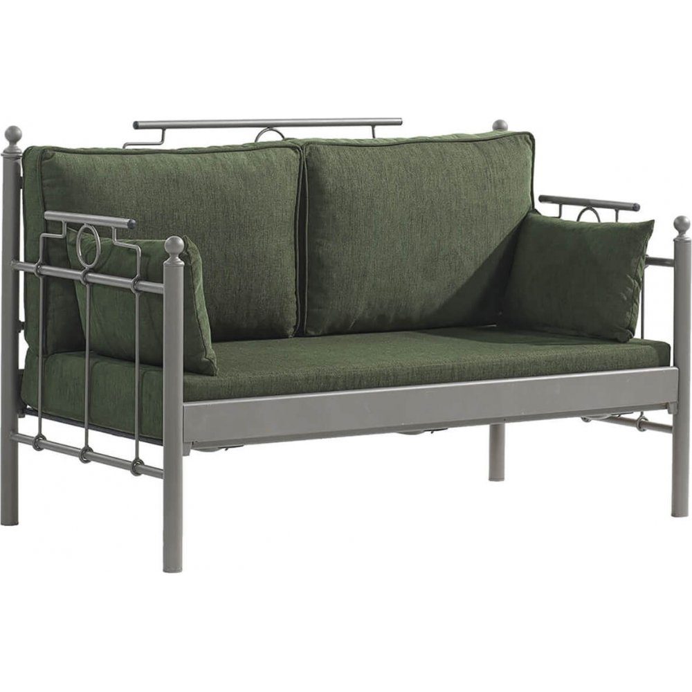 2-sits soffa av metall, klädd med chenille, polyester och bomull.