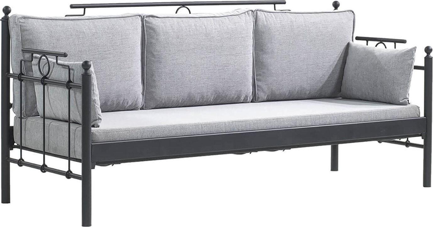 3-sits soffa av metall, klädd med chenille, polyester och bomull.