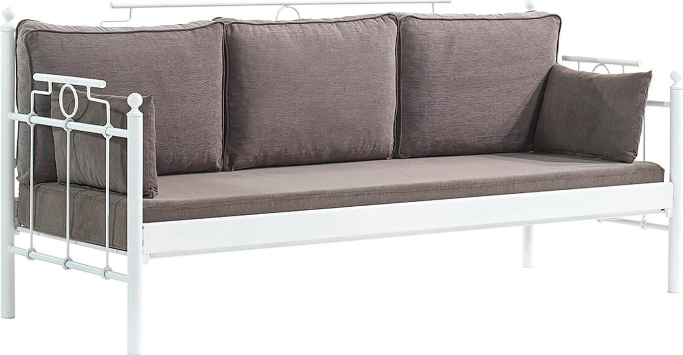 3-sits soffa av metall, klädd med chenille, polyester och bomull.