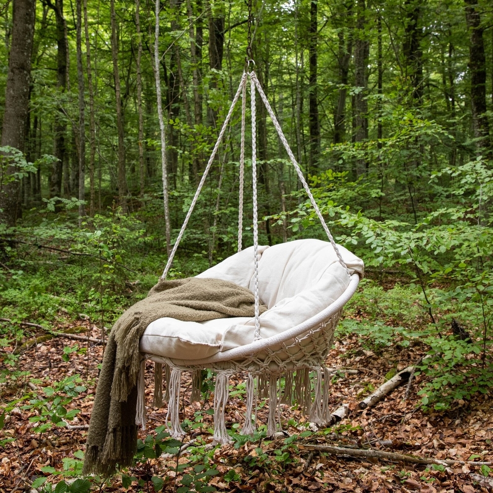 Gör sommarhänget till något alldeles extra i den här läckra hängstolen från serien Hamtic. Designen är genomtänkt och utformad likt en korg som bärs upp av slitstarka rep i smickrande vit kulör. Fluffiga vita dynor ingår som bidrar till extra komfort. Häng upp på uteplatsen eller i trädgården och njut av en bekväm designikon som inte bara blir ett blickfång i sommar utan även blir din nya favoritplats att koppla av på!