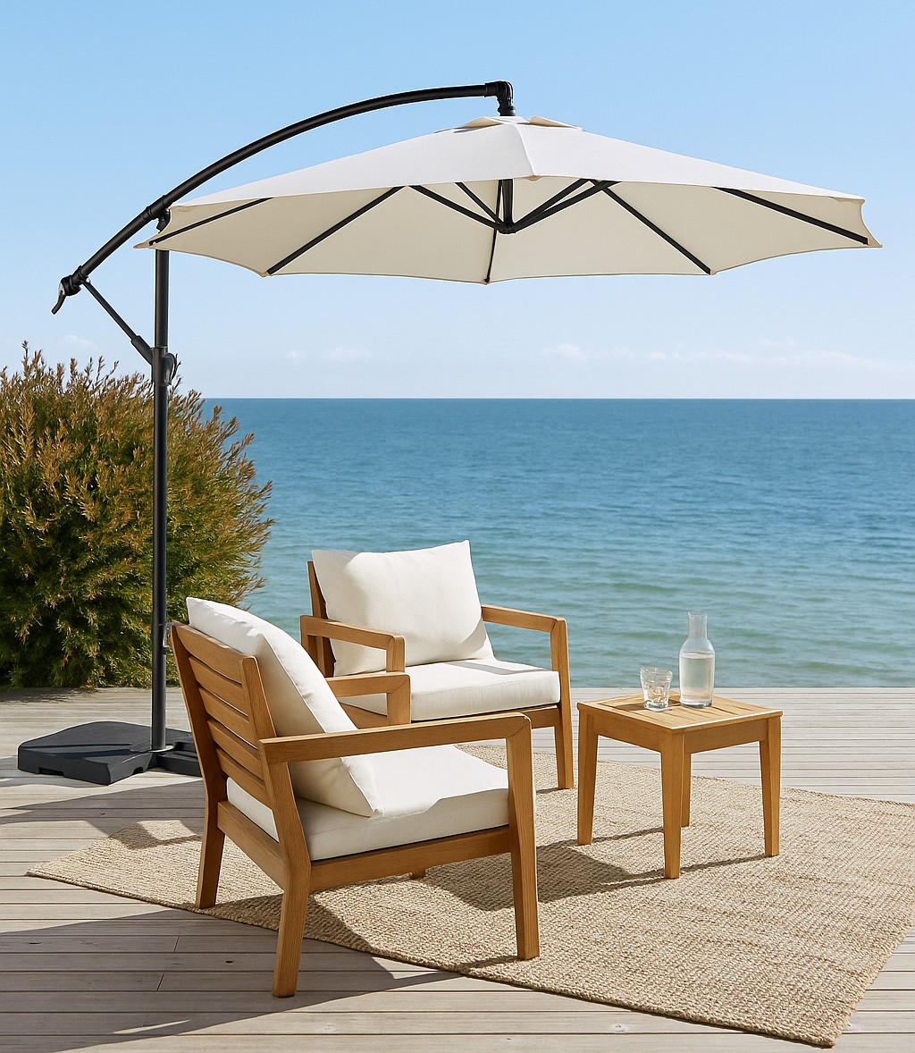 Funktion: Hängparasoll med vevfunktion för enkel justering