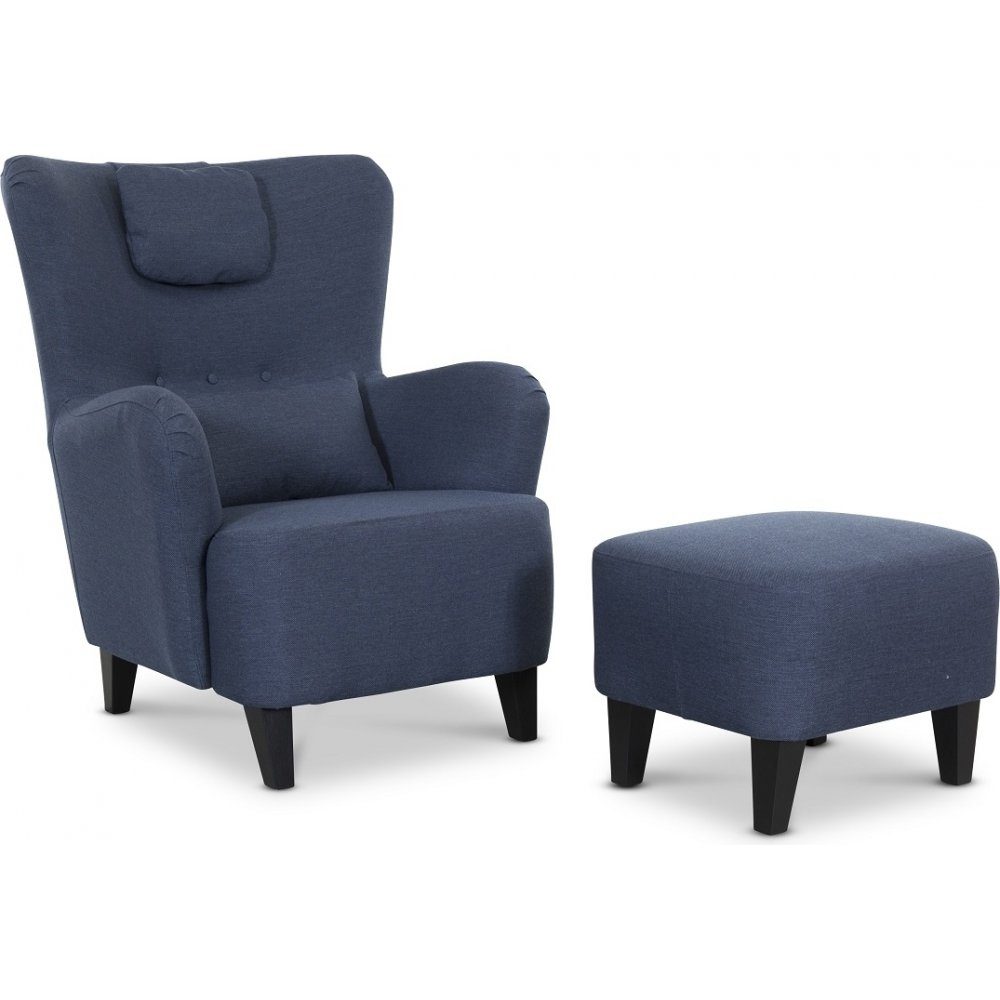 Harmony mörkblå fåtölj med fotpall