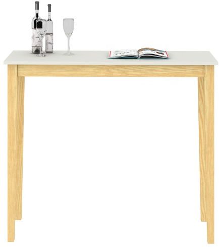Ett snyggt barbord i modern design. Bordet har naturliga träben och en bordskiva i vit melamin vilket är ett tåligt material som klarar fukt och värme.
