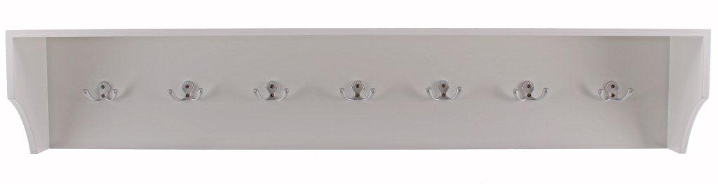 Hatthylla i trä och MDF som främst erbjuder möjlighet till upphängning av plagg.
