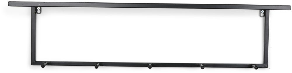 En snygg och modern hatthylla med klädhängare i metall som lätt monteras på väggen.