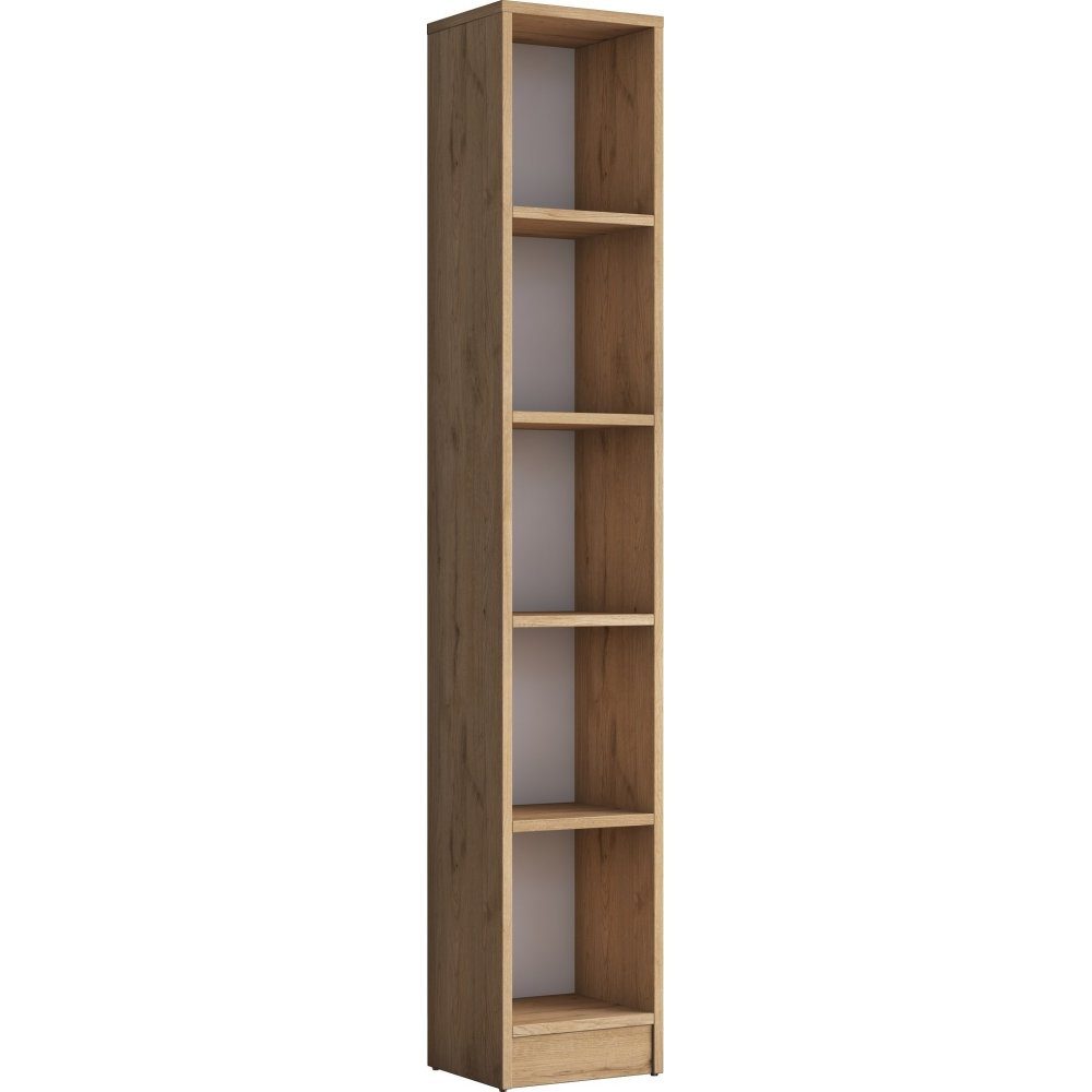 Bokhylla av melaminbelagd spånskiva.