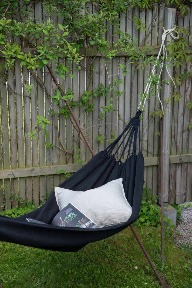 Bekväm, slitstark och tidlös hängmatta från serien Hedvig. Här kan du slöläsa din bok på allra bästa sätt i en klassisk singel hängmatta i stilren svart kulör. Det slitstarka polyestertyget och dekorativa repen ger dig en tålig och smakfull hängmatta som ger din uteplats en touch av den colombianska avkopplingskulturen. Upphängningen består av flera rep som bidrar till jämvikt och större bekvämlighet. Sjunk djupt ner och njut av lata sommardagar i en mysig hängmatta!