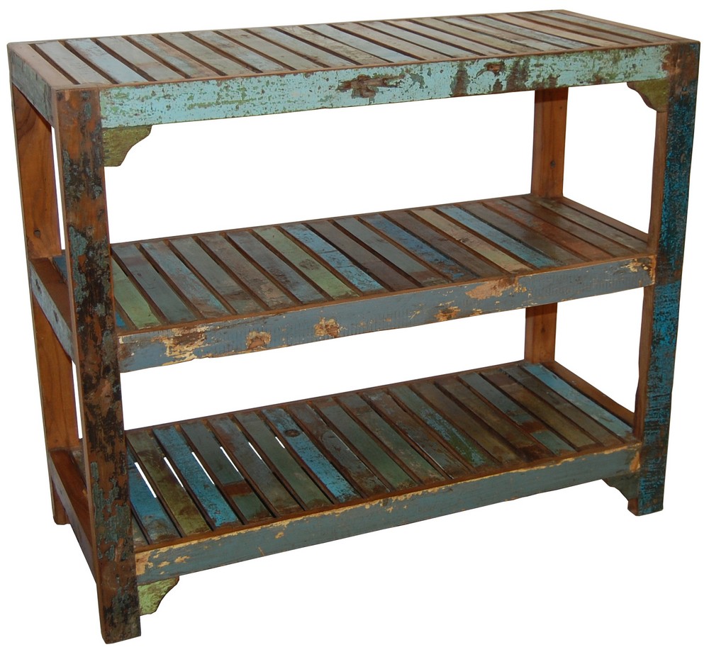 Häftig annorlunda hylla i återvunnet trä med tre hyllplan. Varje hylla är unik och kan därför skilja i finish.