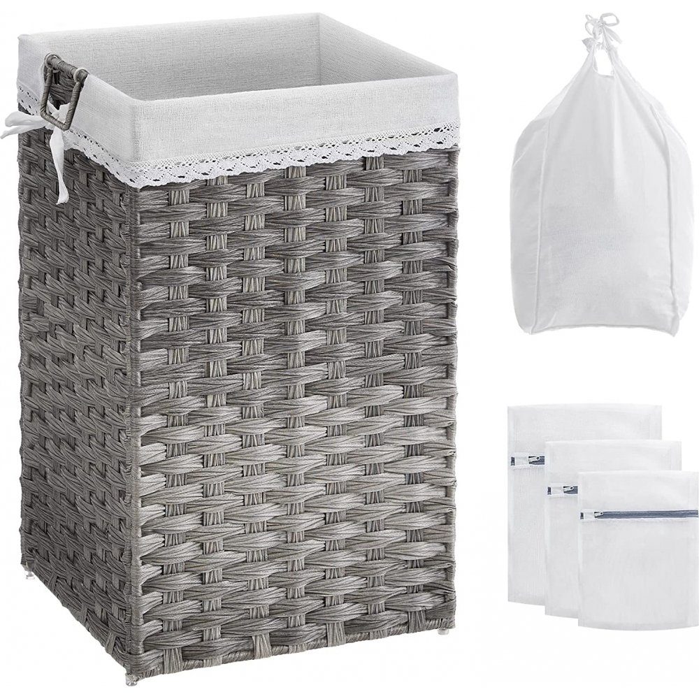 Tvättkorg av konstrotting. Det medföljer 3 st tvättpåsar och en extra innerpåse. Korgen kan vikas ihop när den inte används.