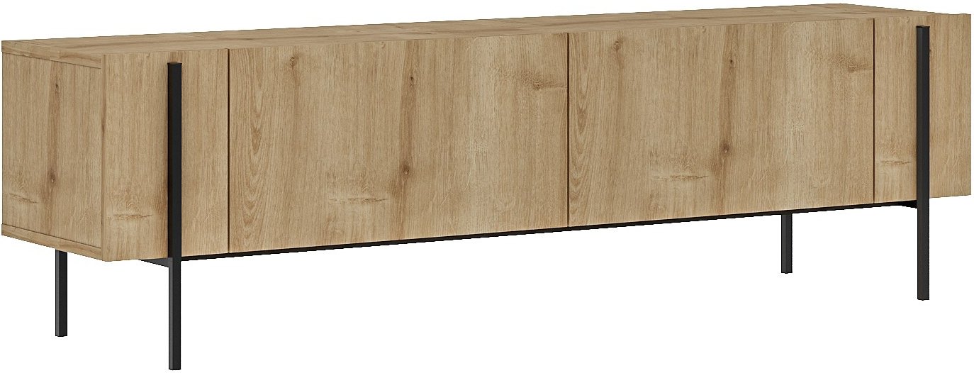 Förvandla ditt vardagsrum till ett elegant och organiserat utrymme med vårt snygga mediabänk. Mediabänken är tillverkat av melaminbelagd spånskiva och är inte bara hållbart utan ger också en elegant touch till din heminredning. Den ekfärgade kulören ger en modern touch till alla rum, vilket gör det till det perfekta tillskottet till ditt underhållningsområde.