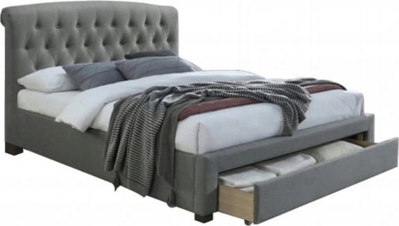 En härlig säng med en modern design. Sängen är tillverkad av solid trä och klädd med ett mycket behagligt tyg för maximal komfort. Sängen är även rustad med en låda i änden för smart förvaring av exempelvis sängkläder.