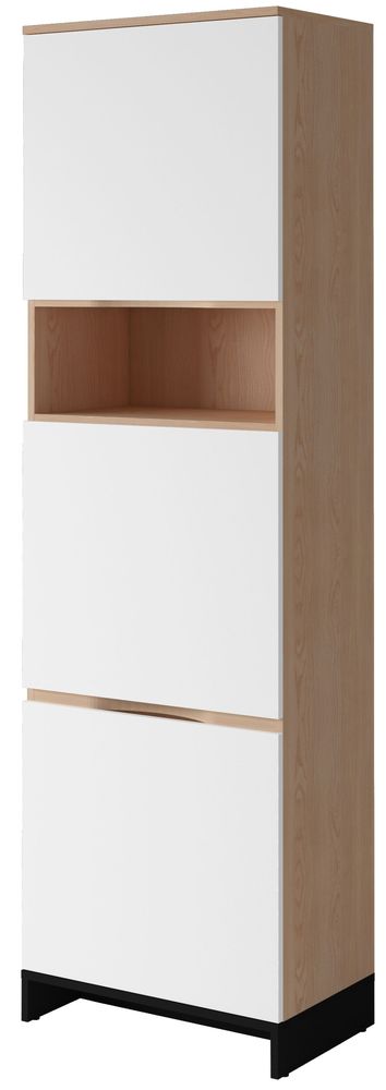 Ett snyggt förvaringsskåp med en stilren design. Tillverkad i MDF med slät laminerad front och goda förvaringsmöjligheter i form av tre skåp och ett öppet hyllplan.