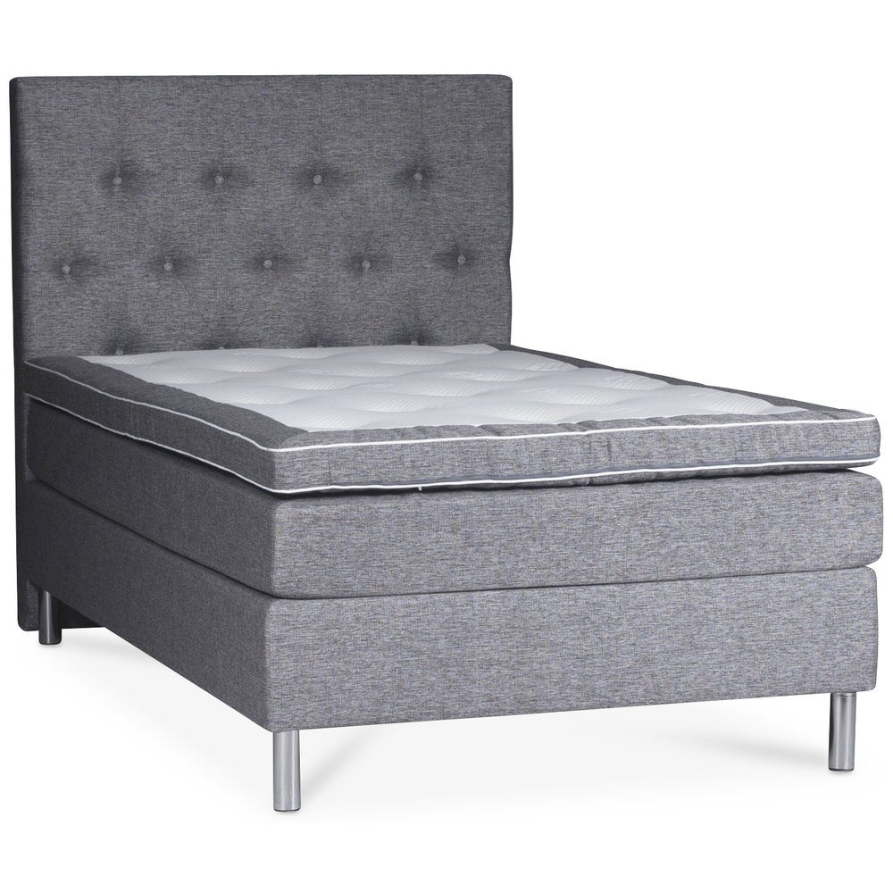 Sängen är uppbyggd med 1 st 90/120/140 cm bred sängbotten. Sängbotten är byggd i 8 cm massiv träram i fingerskarvat furuträ, klätt i slitstarkt tyg. Bottendelen är uppbyggt av ett kraftigt bonellfjädersystem. Mellanmadrassen består av ett 5-zons pocketfjädersystem med valbar fasthet för att få den sovkomfort som önskas. Varje Pocketfjäder är separat inkapslad för att arbeta individuellt och ge en så följsam komfort som möjligt.