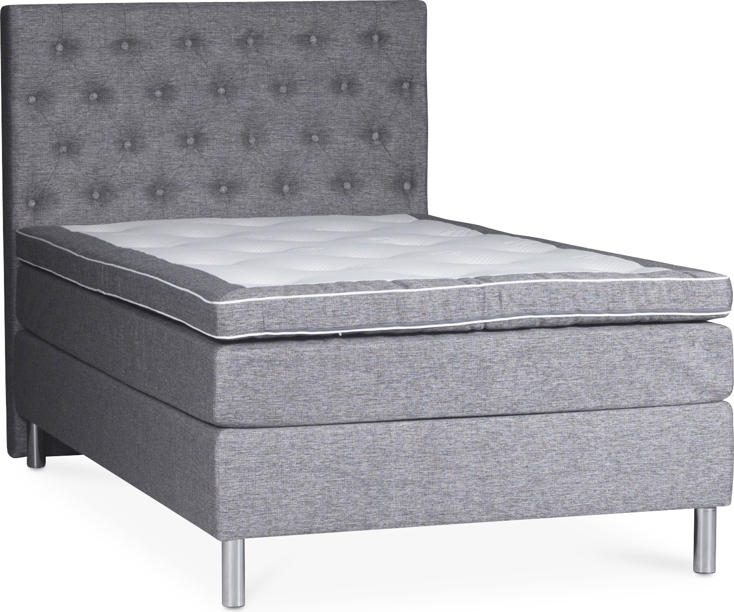 Inkluderat i komplett sängpaket: 1 st säng (valbar storlek) med sängstomme, resårmadrass och bäddmadrass, 4 stycken aluminiumben och 1 st sänggavel.