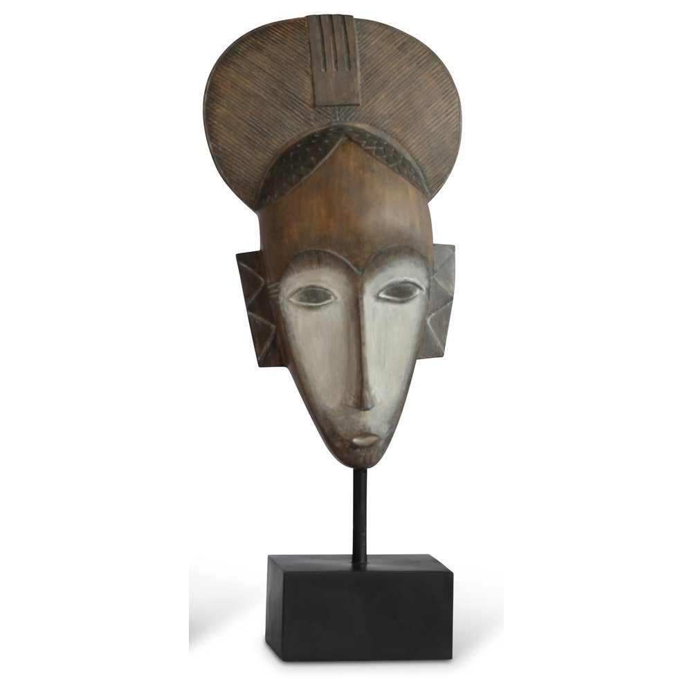 Dekorativ inredningsdetalj på hela 61 cm höjd. Utförande antik mask med svart metallfot.