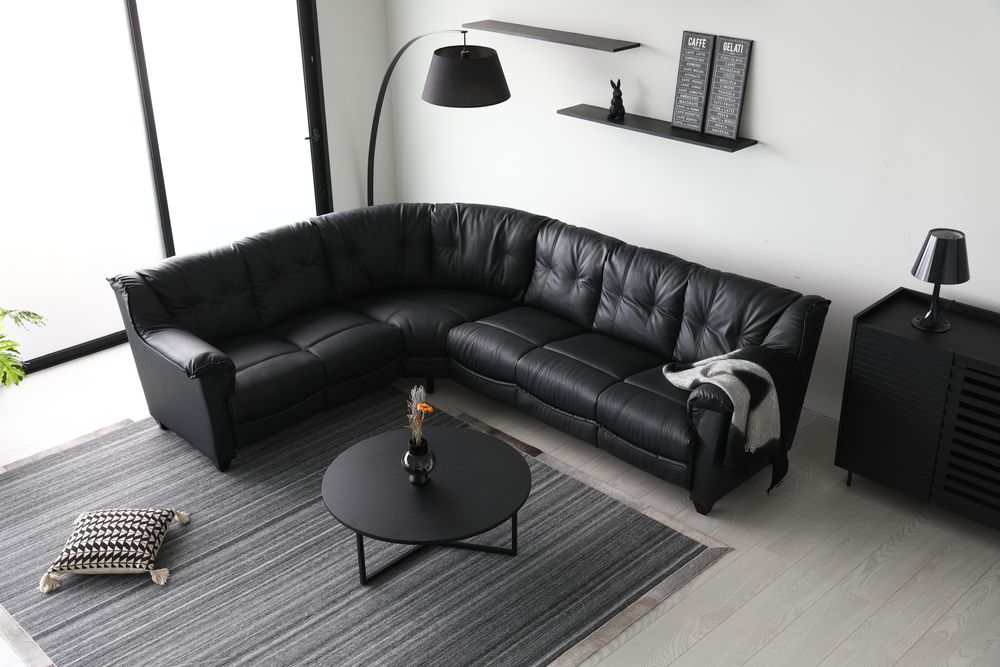 Hjalmar hörnsoffa - Svart (Ecoläder)