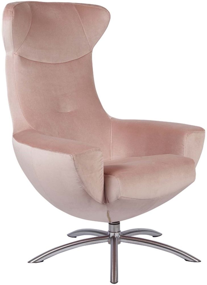 En mysig fåtölj med en retro design. Underredet är tillverkat av borstad stål och sitsen har både gung och snurr funktion. Sitsen är av formgjuten kallskum och klädd med ett mycket behagligt rosa tyg för maximal komfort.