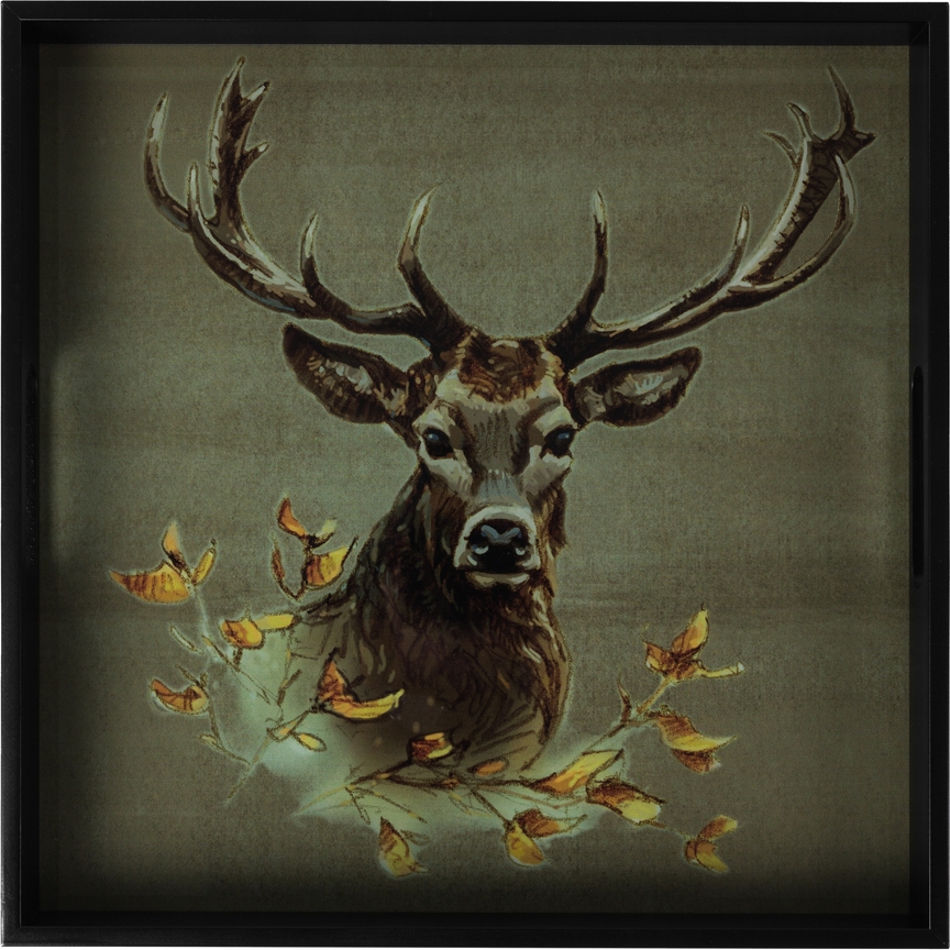 Serveringsbricka av plast och glas med tygklädd undersida.