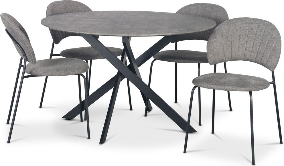 Hogrän matgrupp Ø120 cm bord i betongimitation + 4 st Hogrän grå stolar