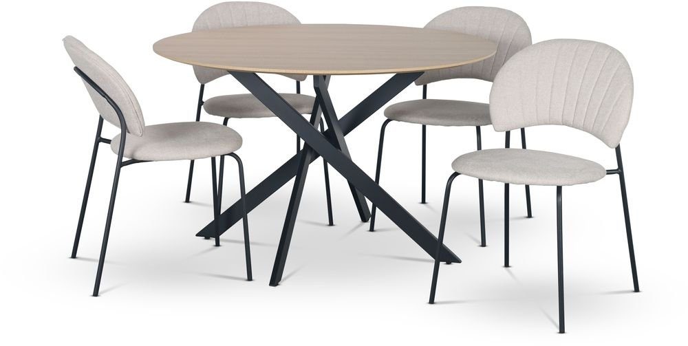 Hogrän matgrupp Ø120 cm bord i ljust trä + 4 st Hogrän beige stolar