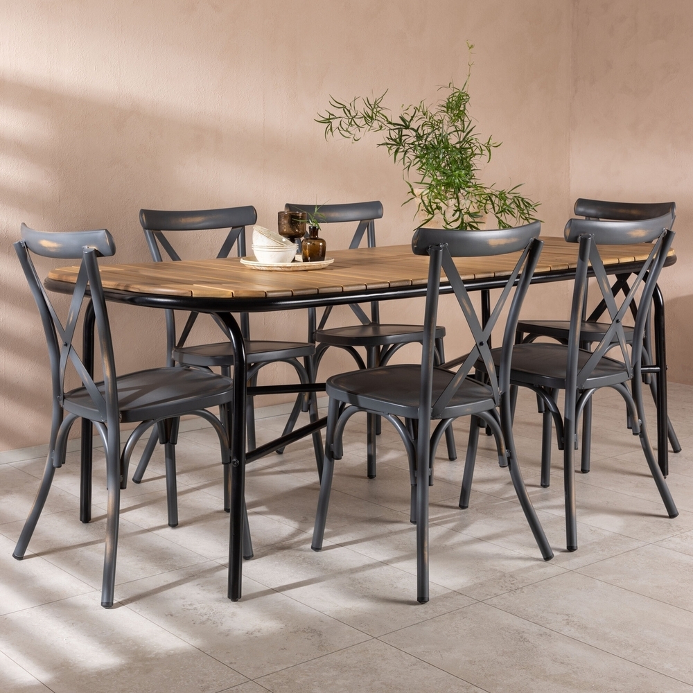 Holmbeck utematgrupp med 6 st Peking stolar - Mörkgrå/Natur