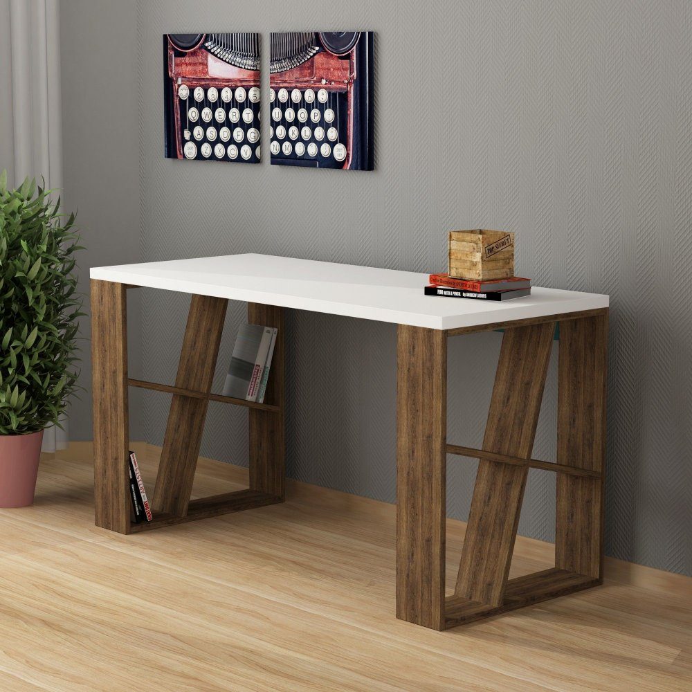 Honey skrivbord 140x60 cm - Vit/mörk ek