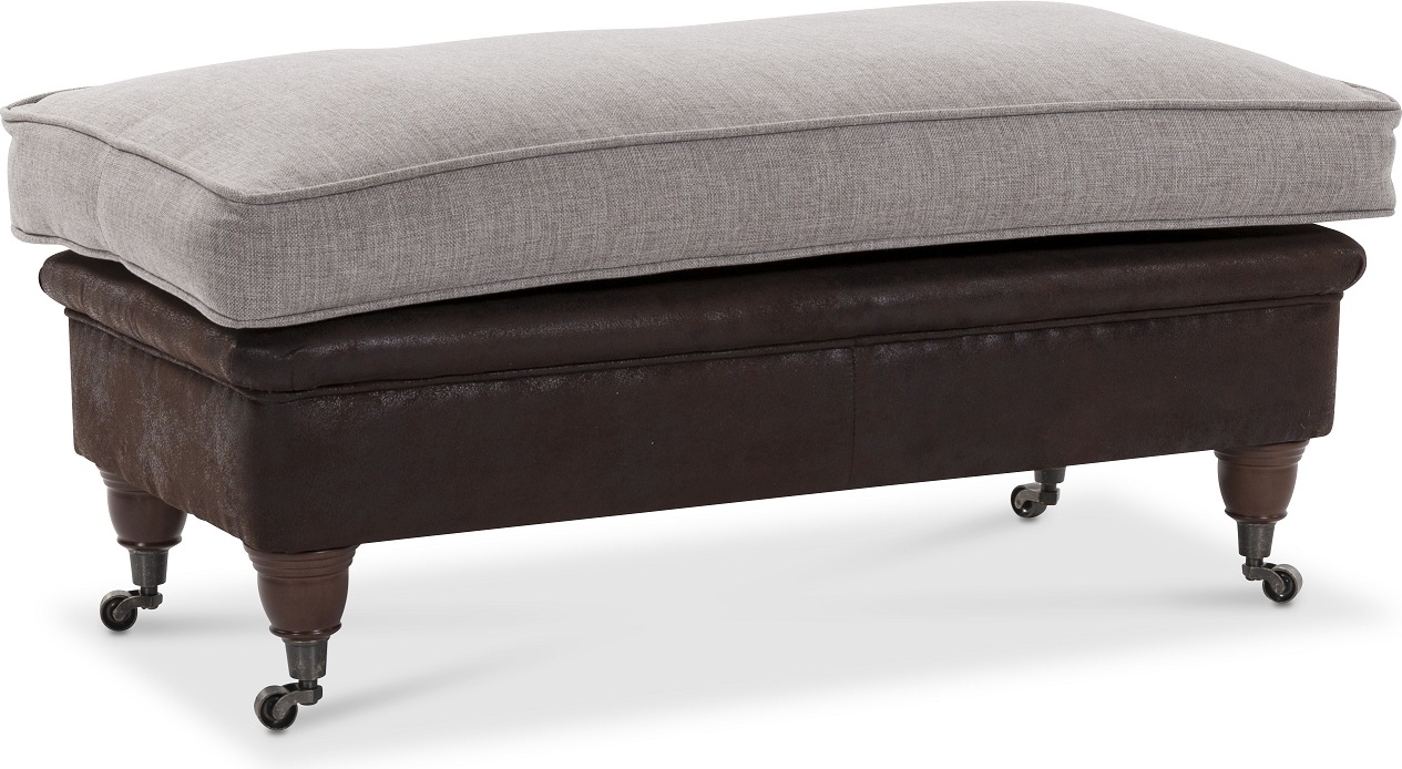 Fotpallen finns i en vintage klädsel som är populär i många hem.
