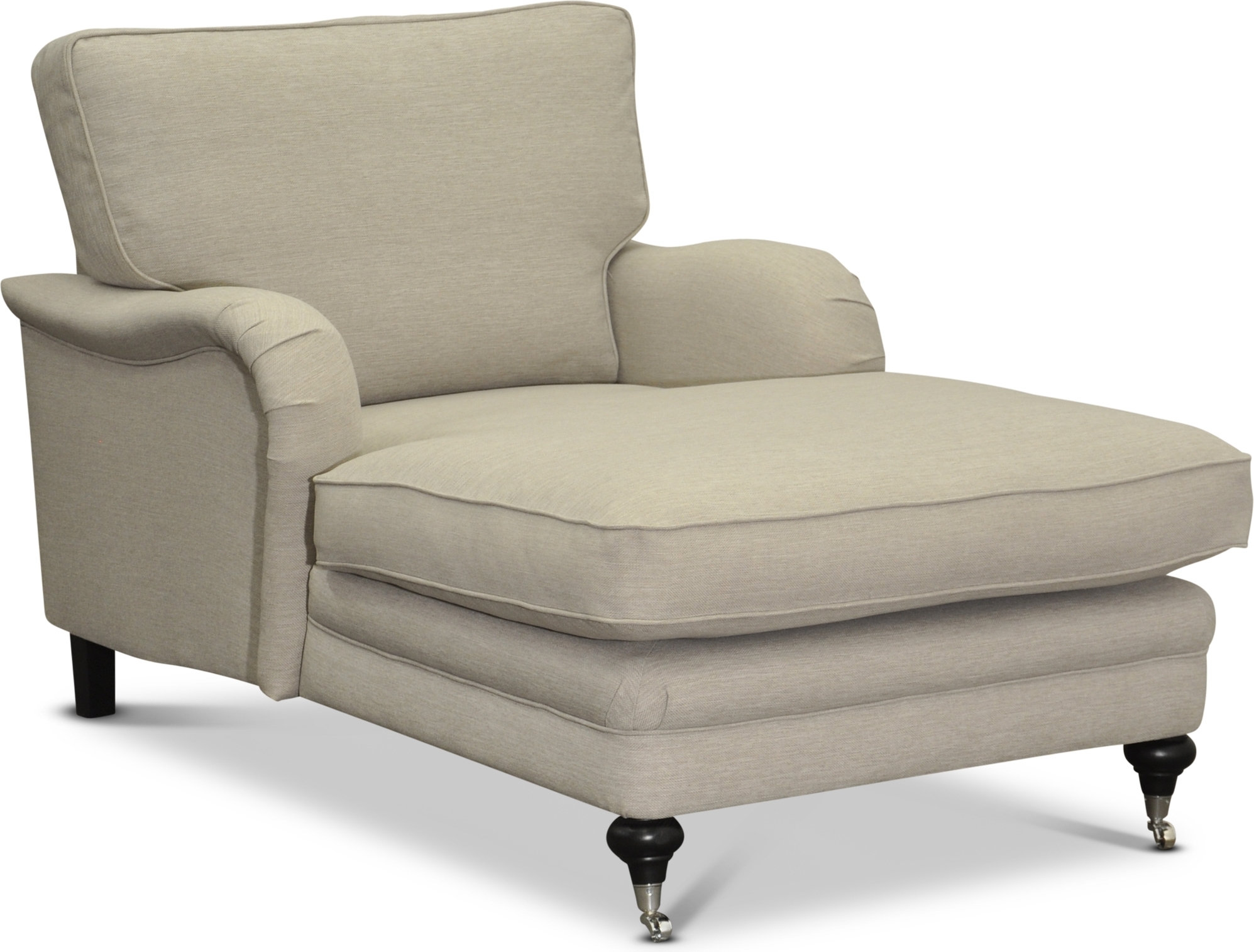 Sandfärgad tålig klädsel. Gedigen konstruktion. Arbetade detaljer. Hög sittkomfort.