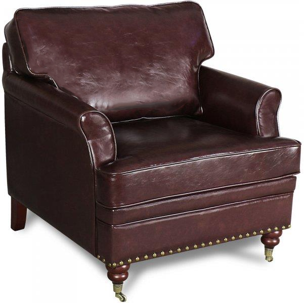 Professor skinnfåtölj är en klassisk Howard fåtölj med skön sittkomfort. Fåtöljen är klädd i äkta brunt läder. Lädret är antikbehandlat för att få rätt utseende och känsla. Fåtöljen passar utmärkt till vardagsrummet. Till fåtöljen har man satt på de klassiska hjulförsedda frambenen som är ett signum för en Howardfåtöljer.