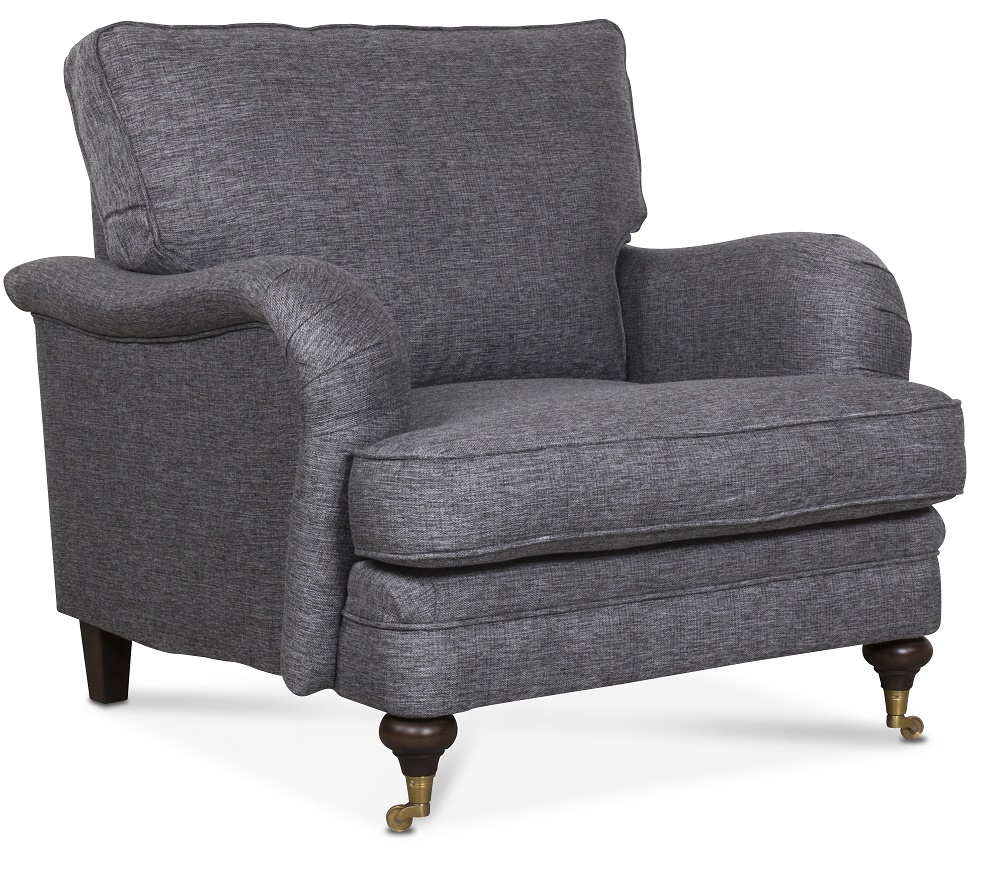 Fåtöljen finns i en grå och stilren klädsel som passar i alla hem.