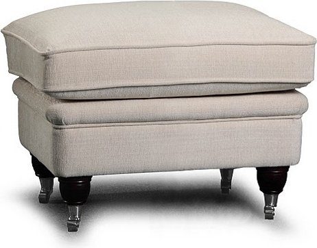 Fotpallen kommer i en ljusbeige och stilren klädsel som passar in alla hem.