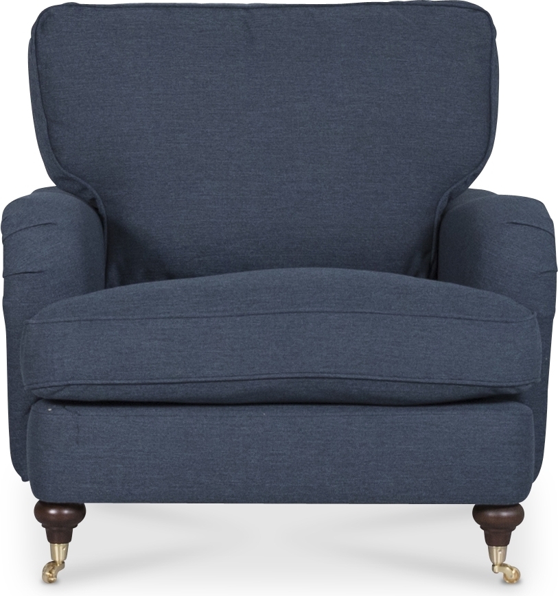Fåtöljen finns i en navyblå och stilren klädsel som passar i alla hem.