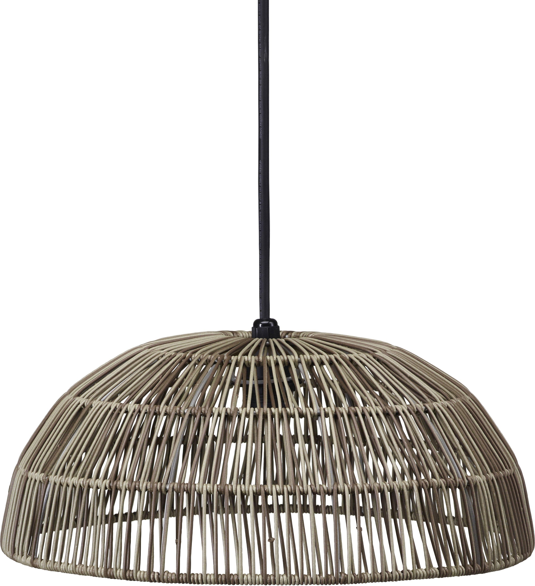 Hue Taklamps i konstrotting för utomhusbruk. Konstrotting är ett tåligt material som klarar väder och vind. Skärmen finns i flera färger och storlekar, och den flätade strukturen skapar ett vackert ljusspel. Skärmen kommer tillsammans med ett svart Flex Out lampupphäng för utomhusbruk.