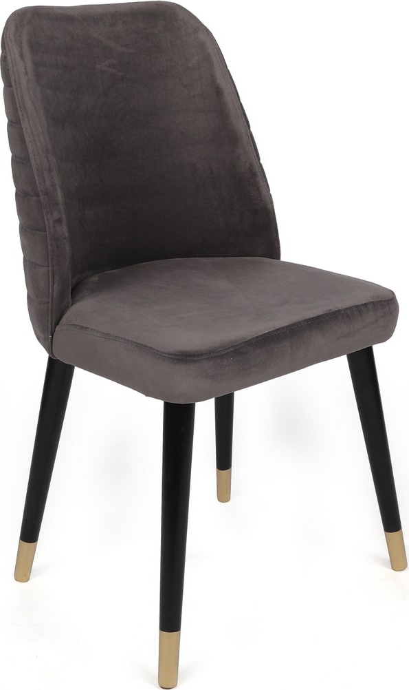 Matstol av metall med klädsel av sammet och ben av avenbok.
