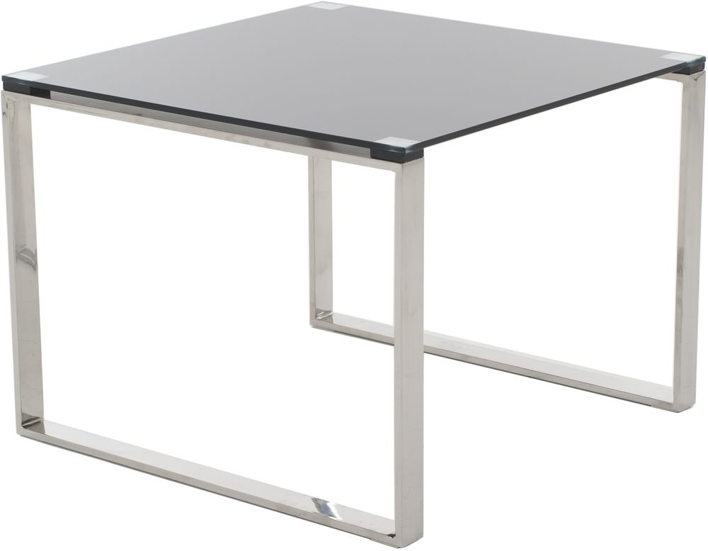 Nätt soffbord i svart glas med underrede i polerat rostfritt stål. Ett soffbord som gör sig bra till de mindre soffgrupperna.