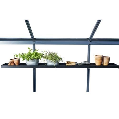 En hylla på två sektioner som enkelt fästes i växthuset profiler.