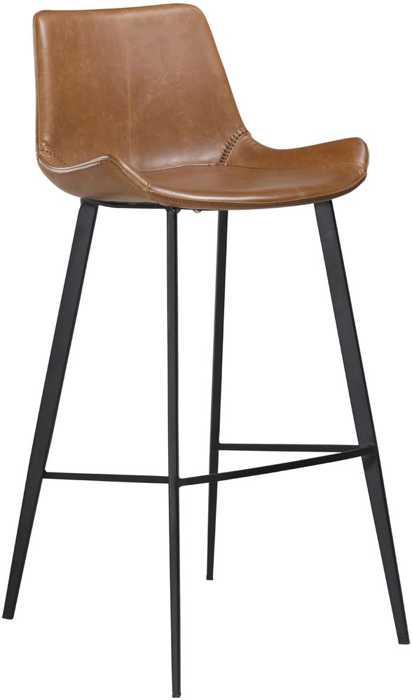 Modernt designad barstol som passar perfekt in i hushållet. Tillverkad i trä, klädd med ett mycket behagligt vintage konstläder och ben av svart metall med fotstöd.