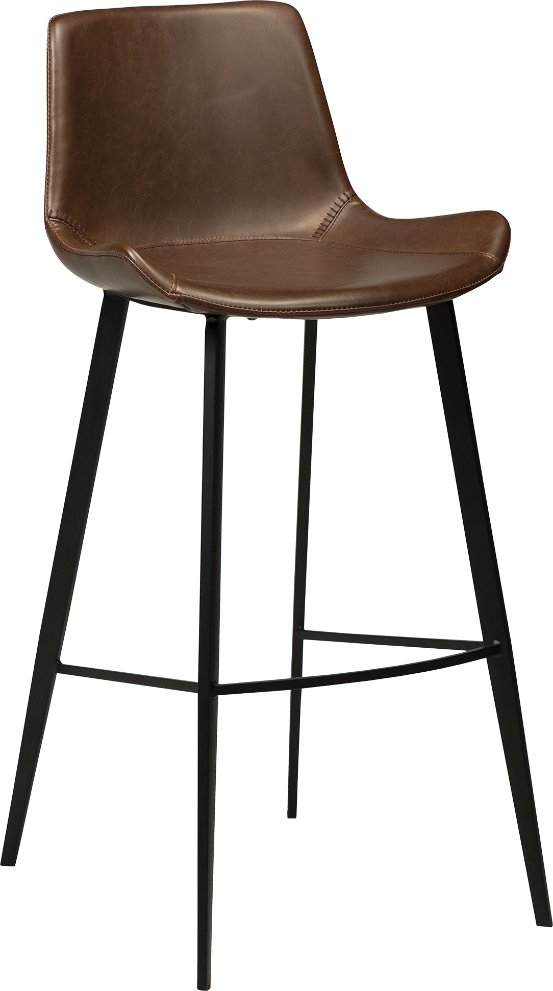 Stilren barstol med skålad och bekväm sits som är klädd med ett snyggt och elegant konstläder. Benen är tillverkade i svartlackad metall. Detta är stolen för dig som vill ha en traditionell barstol med moderna linjer och bra komfort i kombination med en stadig konstruktion.