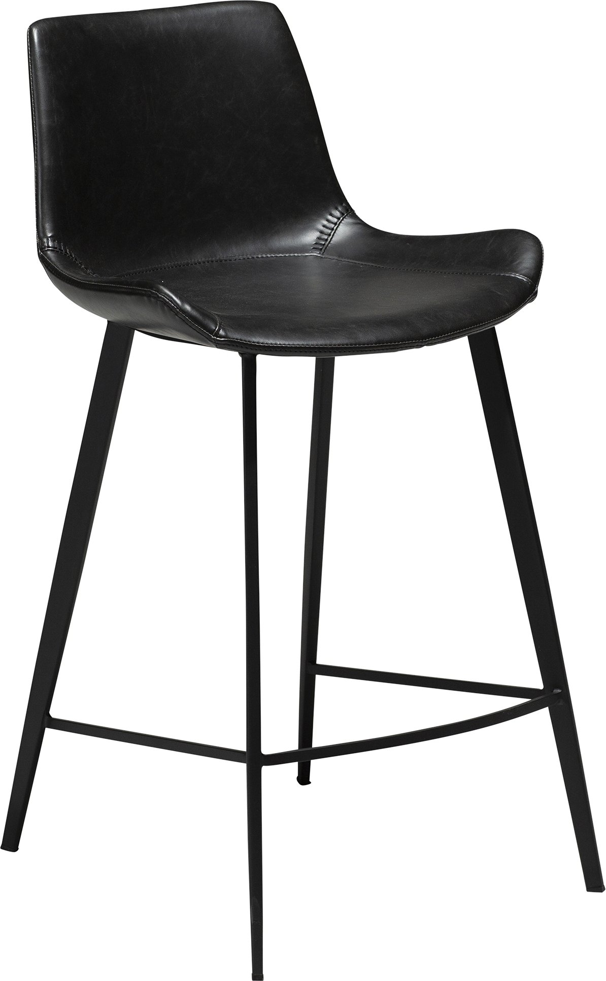 Stilren barstol med skålad och bekväm sits som är klädd med ett snyggt och elegant konstläder. Benen är tillverkade i svartlackad metall. Detta är stolen för dig som vill ha en traditionell barstol med moderna linjer och bra komfort i kombination med en stadig konstruktion.
