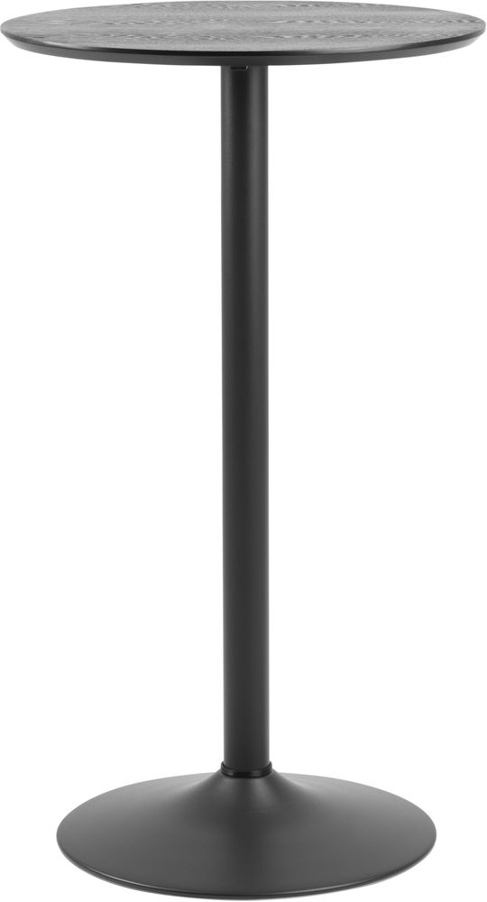 Barbord med bordsskiva av MDF med ask fanér. Underredet är tillverkat av svart pulverlackerad metall.
