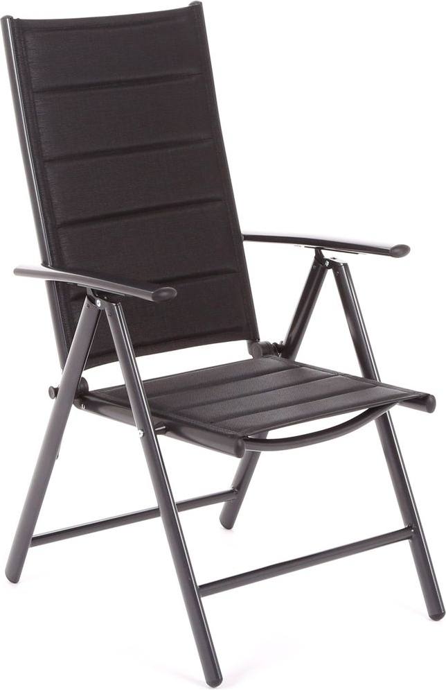 Stol tillverkad i pulverlackerad aluminium. Stolen är klädda med stoppad textil. Stolen går det även att ställa in ryggstödet i 7 olika positioner, samt fälla ihop för att spara på plats.