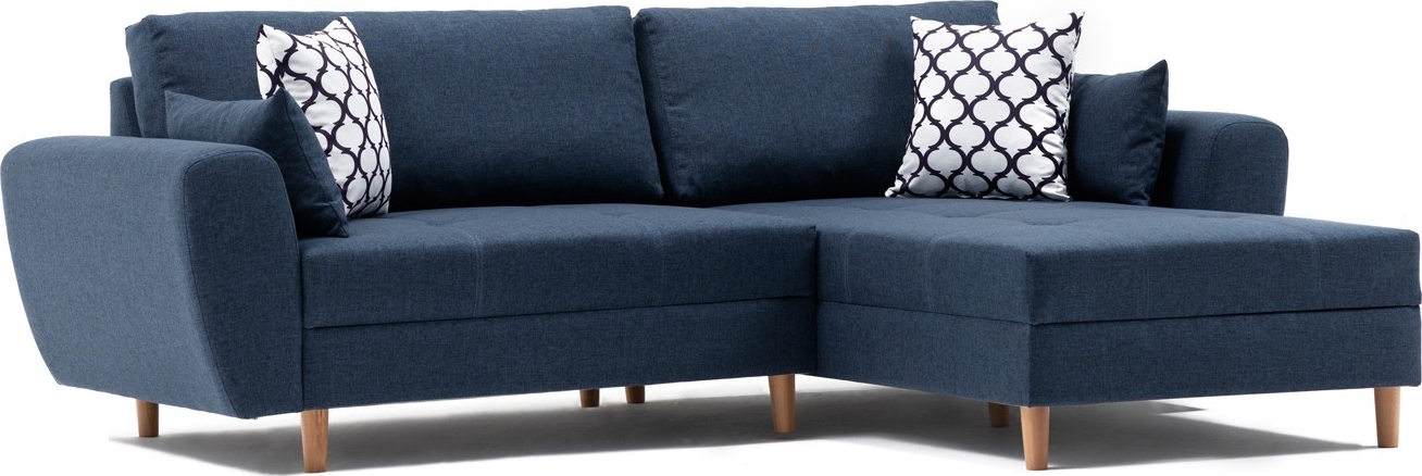Divansoffa av bokträ. Klädsel av polyester(linne).