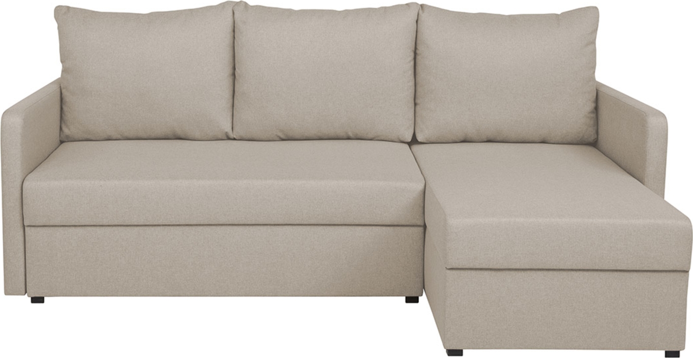 Divansoffa med bäddfunktion och förvaringsutrymme. Divanens placering väljs vid montering.