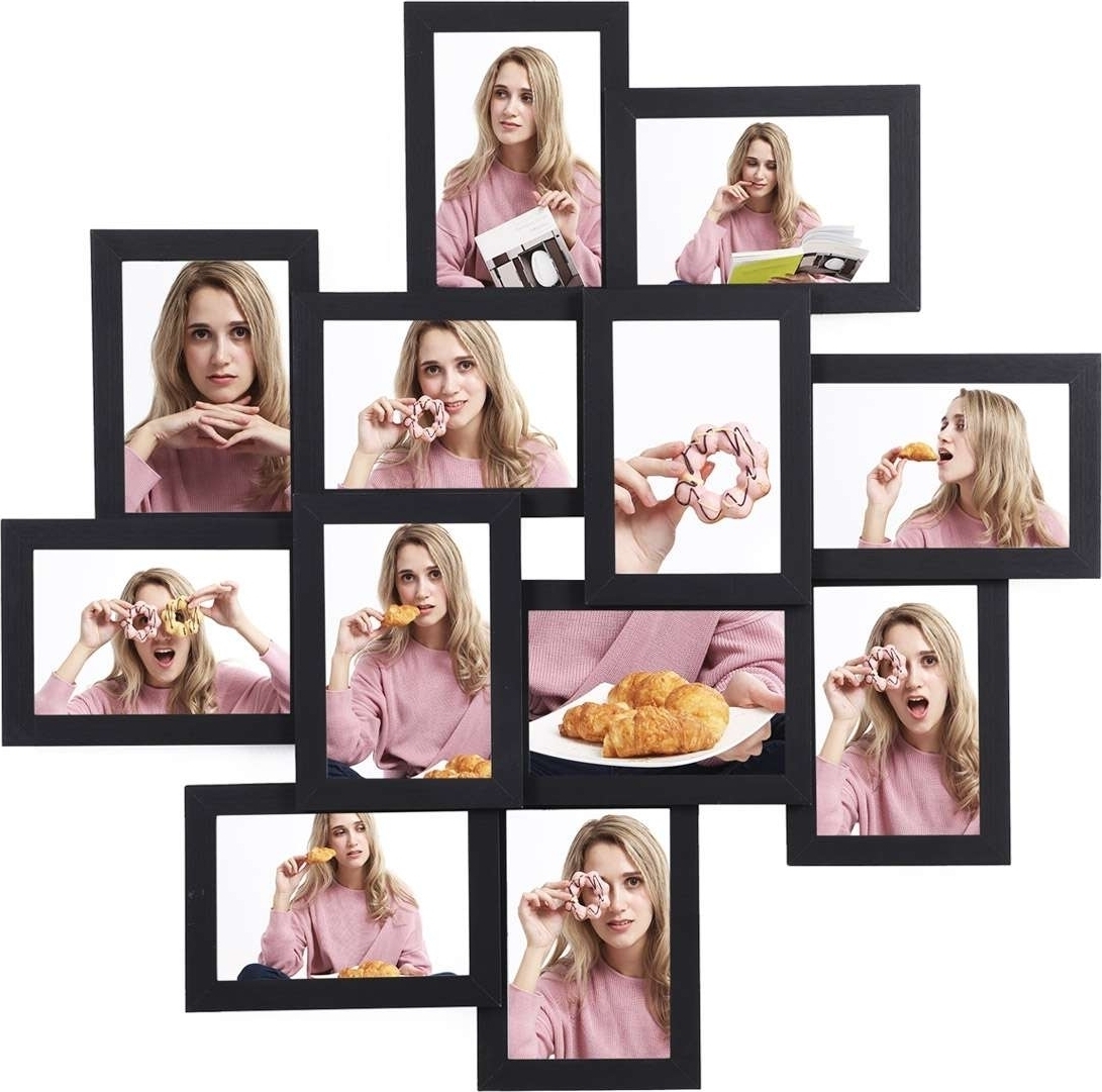 Kollage av fotoramar. Består av 12 st ramar med storleken 15,2 x 10 cm.