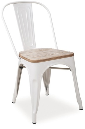Industry matstol i plåt - Vit/Trä