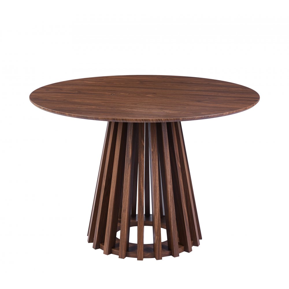 Inez runt matbord med bordsskiva i brunbetsad ekfoliering som matchas med underrede i brunbetsat trä. Modern design och känsla. Bordets toppskiva är 18 mm tjock. Matbordet har plats för 4 till 5 personer.