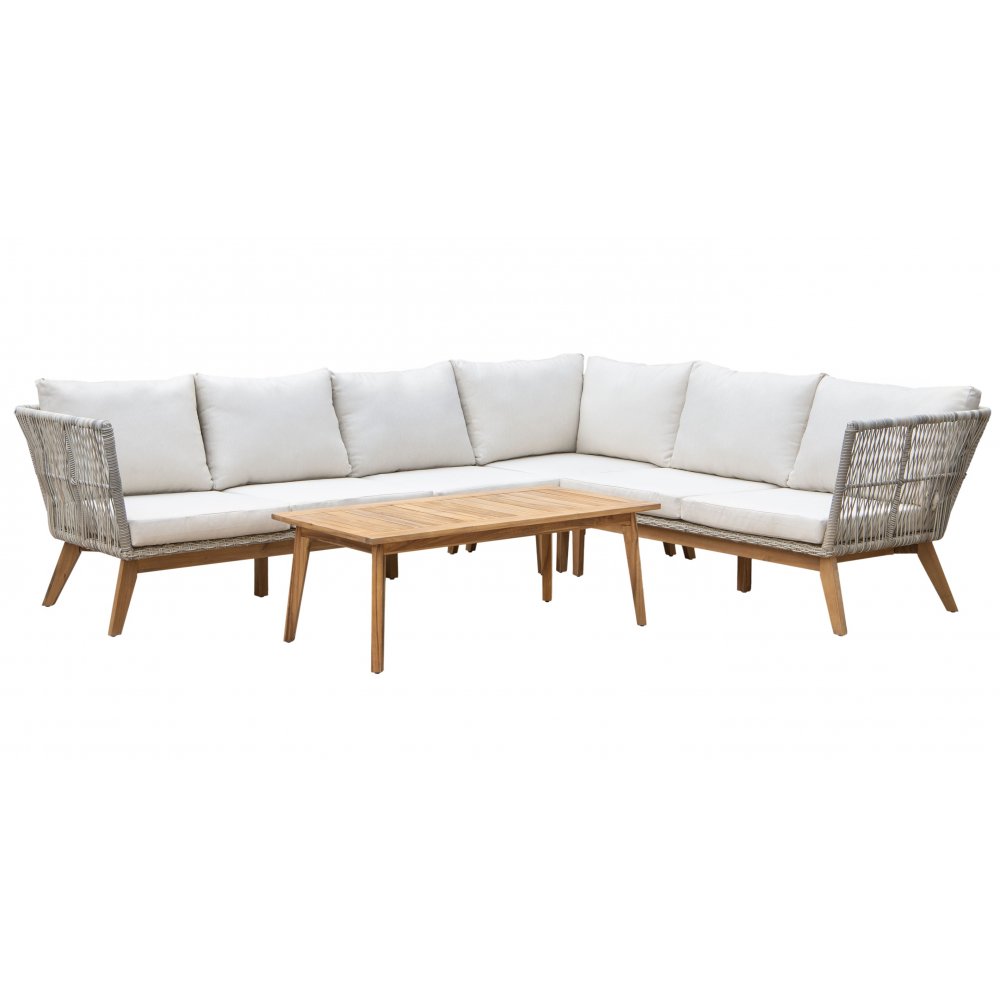 Inez utesoffgrupp med soffbord - Grå konstrotting & Akacia | Hörnsoffa