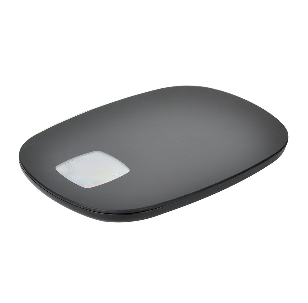 Köksvåg i modern stil, tillverkad av svart glas och ABS (plast).