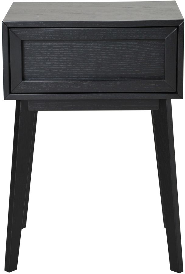 Isak är ett nätt sängbord i svartlackad ekfaner. Runda ben av massiv ek. Finns även i brun och vitpigmenterad ekfaner.