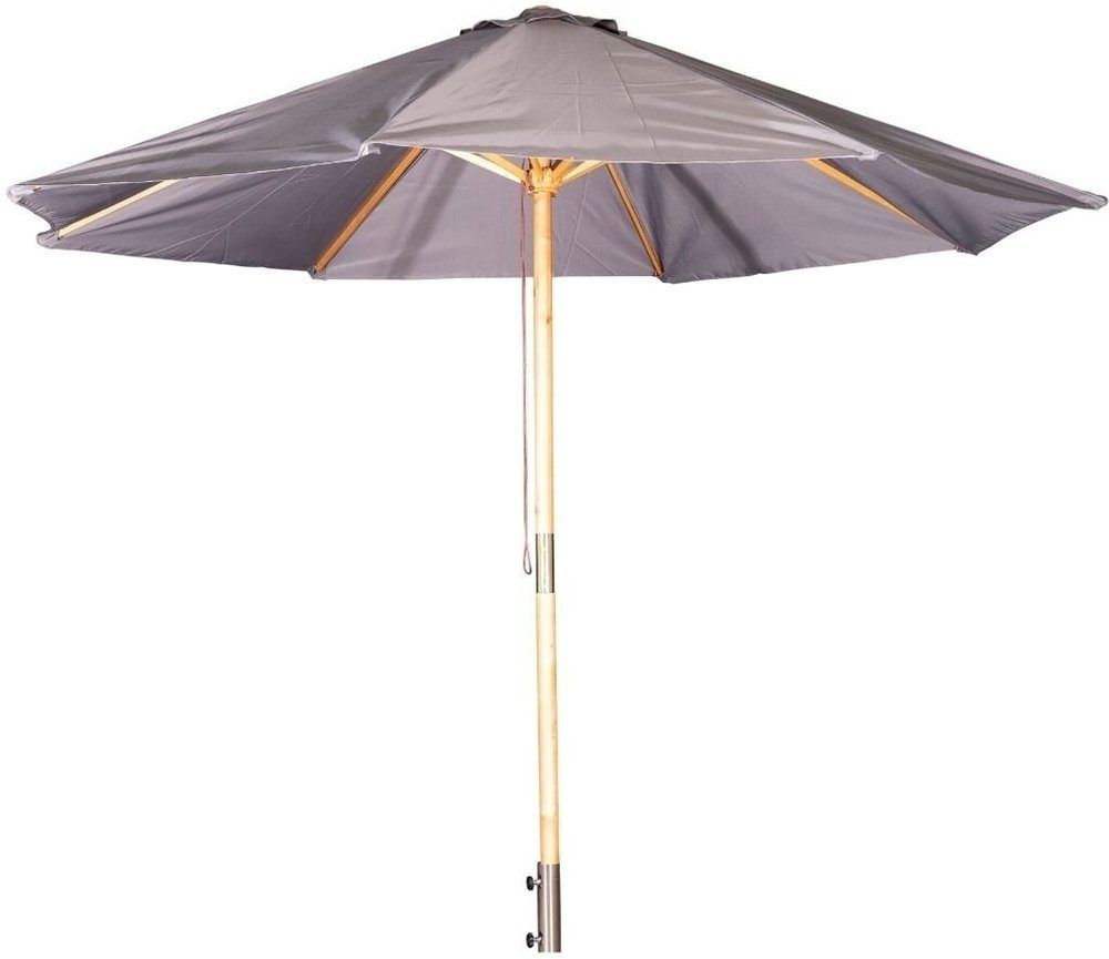 Med Ixos får du ett smakfullt, fristående parasoll i grått tyg med en stomme i trä. Parasollet är enkelt att fälla ut och dra ihop. Den enkla designen och vackre kulörerna skapar ett modernt och tidlöst uttryck på uteplatsen. Den nätta storleken gör parasollet enklet att flytta på när det inte används. Dra på ett överdrag när parasollet inte används för att minska risken för solblekning.